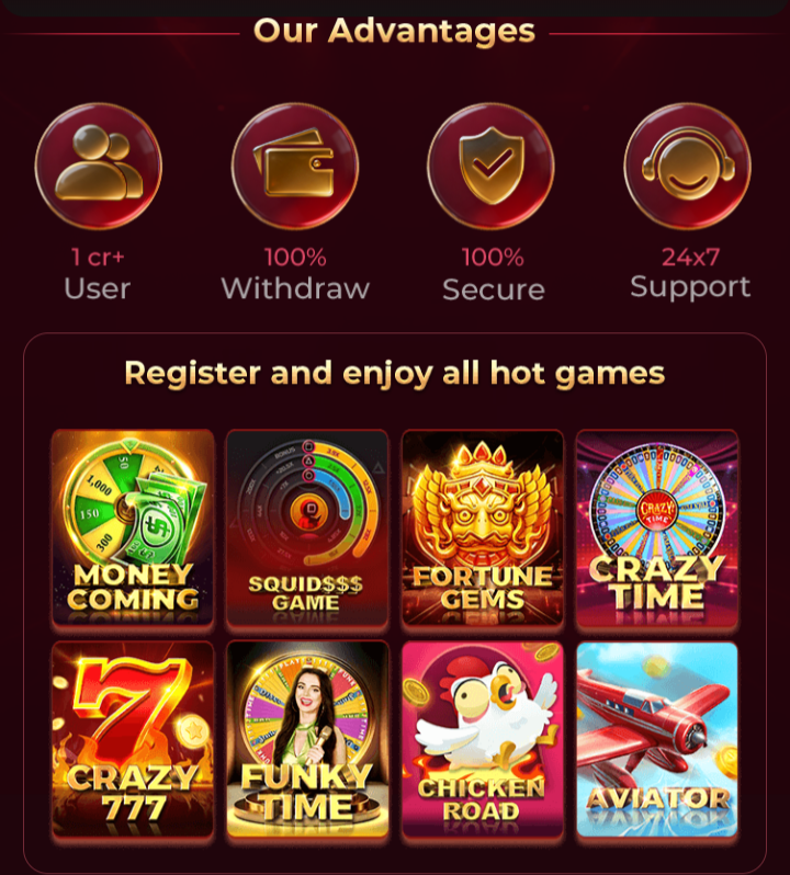 Aap usmein Se Kisi bhi game ko select Karke Khel sakte ho aur aap ka jab tak man Na mare tab tak Paisa Kama sakte ho aur ghar baithkar injoy kar sakte ho